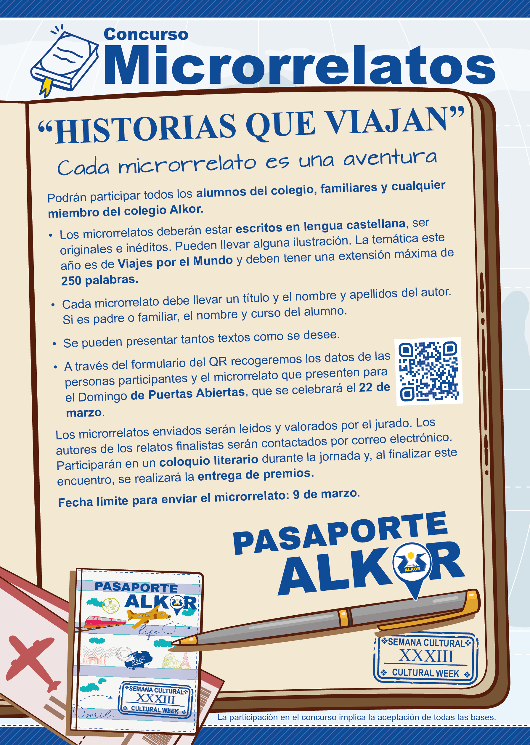 A través del Pasaporte Alkor, el alumnado recorrerá distintos países y continentes participando en talleres lúdicos, creativos y participativos donde el aprendizaje se convierte en aventura. Lenguas, números, ciencia, literatura, cultura y valores se unen en un viaje común que refuerza nuestra identidad como colegio abierto, innovador y europeo.