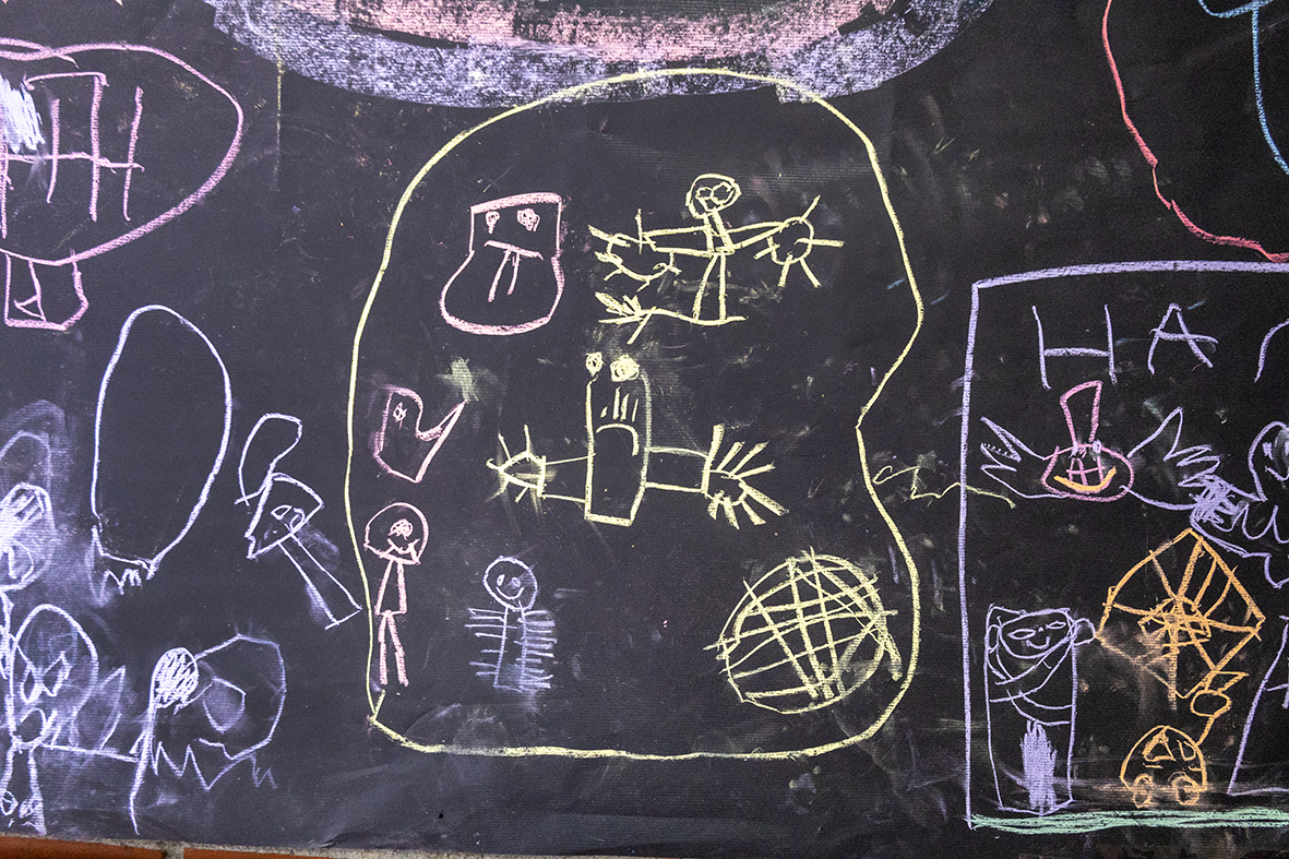 Durante la Educación Infantil, la pintura de los niños pasan por un proceso conocido como la etapa del garabato, que se extiende aproximadamente entre los 2 y los 5 años. En ella, la expresión gráfica evoluciona desde los primeros trazos sin control hasta los dibujos con significado.